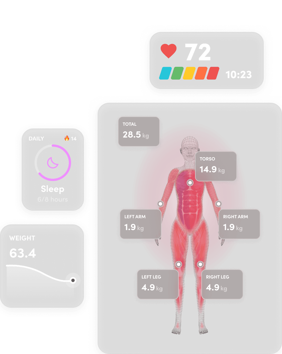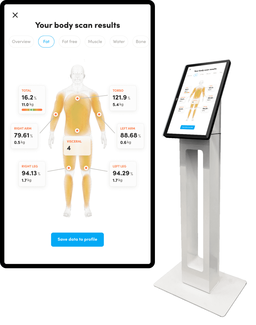 Track Over 250 body metrics: From body composition stats such as fat %, abdominal fat and body water to peak performance testing and exercise and food logging.